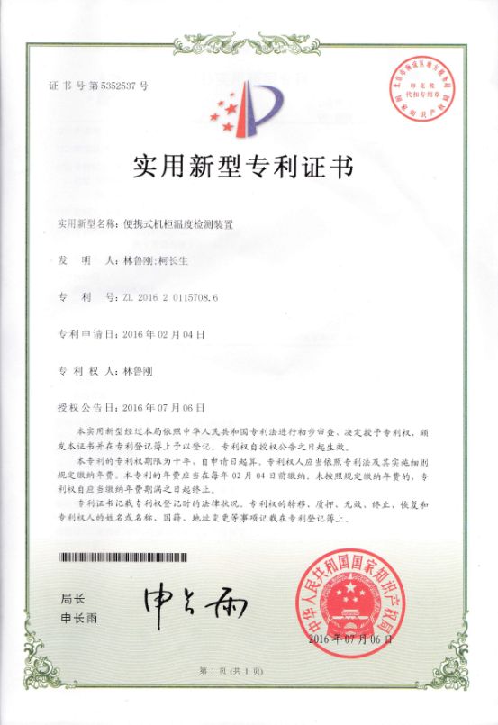 經(jīng)中華人民共和國國家知識產(chǎn)權(quán)局審查核實(shí),我司 “一種用于機(jī)柜容量和設(shè)備資產(chǎn)管理的裝置” 、“便攜式機(jī)柜溫度檢測裝置” 、“機(jī)柜溫度檢測固定裝置” 、“一種數(shù)據(jù)中心可視化管理系統(tǒng)” 、“一種遠(yuǎn)程監(jiān)控的共享單車車鎖” 等五項發(fā)明被授予專利權(quán),