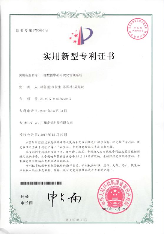 以上多項專利證書的獲得,是麥景科技在科學(xué)研究工作上的一個里程碑,它意味著麥景科技的自主研發(fā)能力在數(shù)據(jù)中心可視化監(jiān)控領(lǐng)域得到了權(quán)威的認(rèn)可和充分的肯定,標(biāo)志著麥景科技在軟件開發(fā)高新技術(shù)領(lǐng)域上邁上了一個新的臺階!